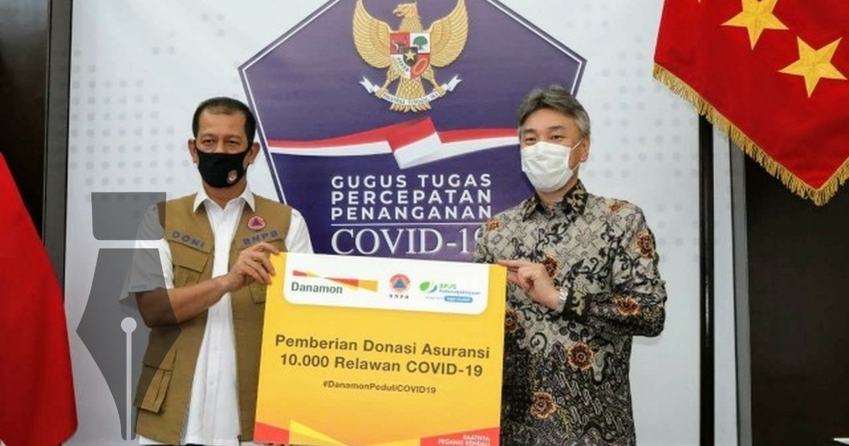 Danamon bpjamsostek donasi asuransi medis PT Bank Danamon Indonesia Tbk memberikan donasi perlindungan asuransi bagi 10.000 relawan Badan Nasional Penanggulangan Bencana (BNPB) dalam bentuk premi asuransi jiwa dan jaminan kecelakaan kerja kepada BPJamsostek, dalam rangka memperkuat dukungan kepada para pejuang yang bekerja di tengah pandemi. Acara penyerahan bantuan ini diadakan di Gedung Graha BNPB dan disampaikan oleh Yasushi Itagaki, Direktur Utama Bank Danamon, yang juga menekankan bahwa kerja sama dengan BNPB dan BPJamsostek menunjukkan komitmen terhadap keberlangsungan pencegahan dan pengendalian COVID-19.