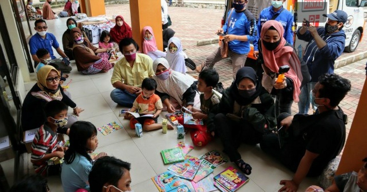 Askrindo bersama PAUD Institute mendatangkan konselor, psikolog anak, dan story teller ke tempat relokasi pengungsi tanah longsor Sumedang, Jawa Barat, pada 1 Februari 2021 melalui Mobil Pintar (MoPi) guna menumbuhkan kembali keceriaan anak-anak korban bencana.
