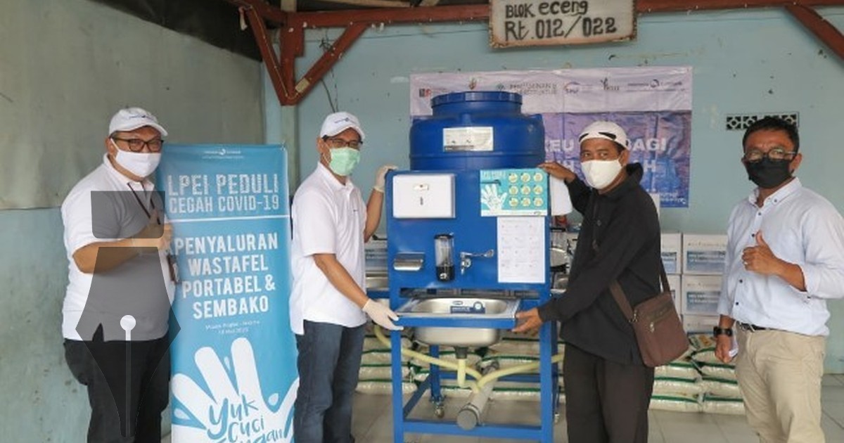 Lpei wastafel sembako covid Indonesia Eximbank/Lembaga Pembiayaan Ekspor Indonesia (LPEI) bersama Special Mission Vehicle di bawah Kementerian Keuangan melaksanakan program CSR dengan donasi sebanyak 10 unit wastafel portable dan 50 paket sembako kepada masyarakat khususnya warga kampung nelayan Blok Eceng di kawasan Muara Angke, untuk memenuhi kebutuhan kesehatan dan kelangsungan hidup masyarakat terdampak oleh pandemi Covid-19.