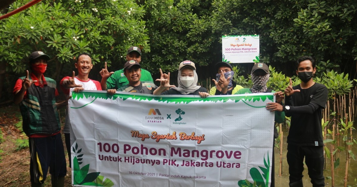 Mangrove tahan abrasi mega Bank Mega Syariah menanam 100 pohon mangrove di kawasan Hutan Mangrove, Angke-Kapuk, Jakarta Utara, sebagai bentuk kepedulian terhadap kelestarian lingkungan. Kegiatan ini dilakukan bekerja sama dengan lembaga nirlaba Lindungi Hutan.