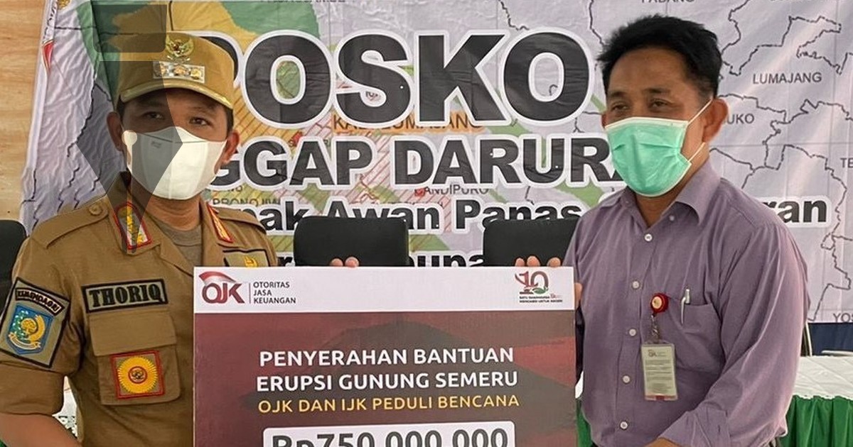 OJK dan IJK menyalurkan bantuan senilai Rp750 juta berupa dana tunai ke rekening Baznas Kabupaten Lumajang serta logistik berupa sembako, obat-obatan, dan perlengkapan lainnya yang diserahkan langsung ke pos pengungsian warga di Desa Sumbersewu, Kecamatan Candipuro, Kabupaten Lumajang.