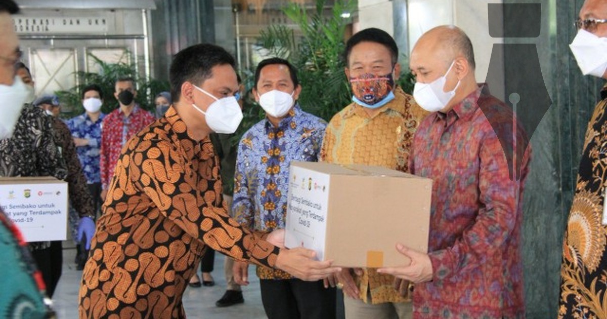 Serah terima paket sembako di Gedung Kementerian Koperasi dan UKM pada 3 September 2021 dihadiri Menteri Koperasi dan UKM Teten Masduki, Sekretaris Direktorat Jenderal Rehabilitasi Kementerian Sosial Idit Supriadi Priatna, serta Kabidhumas Polda Metro Jaya Kombes Pol Drs. Yusri Yunus.