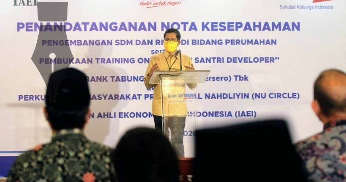 Santri pelatihan sdm btn Untuk meningkatkan kualitas Sumber Daya Manusia menjadi wirausaha di sektor properti, PT Bank Tabungan Negara (Persero) Tbk bersama Perkumpulan Masyarakat Profesional Nahdliyin (Nusantara Utama Cita/NU Circle) dan Ikatan Ahli Ekonomi Islam Indonesia (IAEI) menyelenggarakan pelatihan dan pendidikan online serta offline bagi alumni pondok pesantren dan pegiat ekonomi Islam.